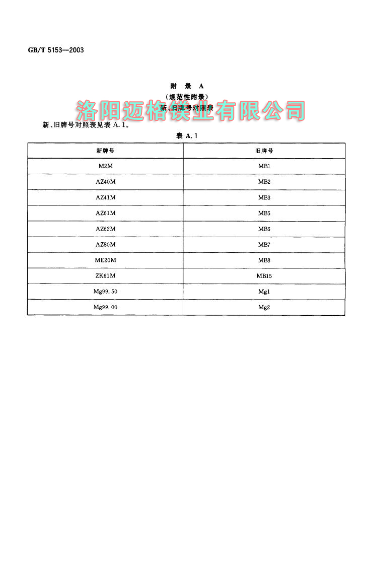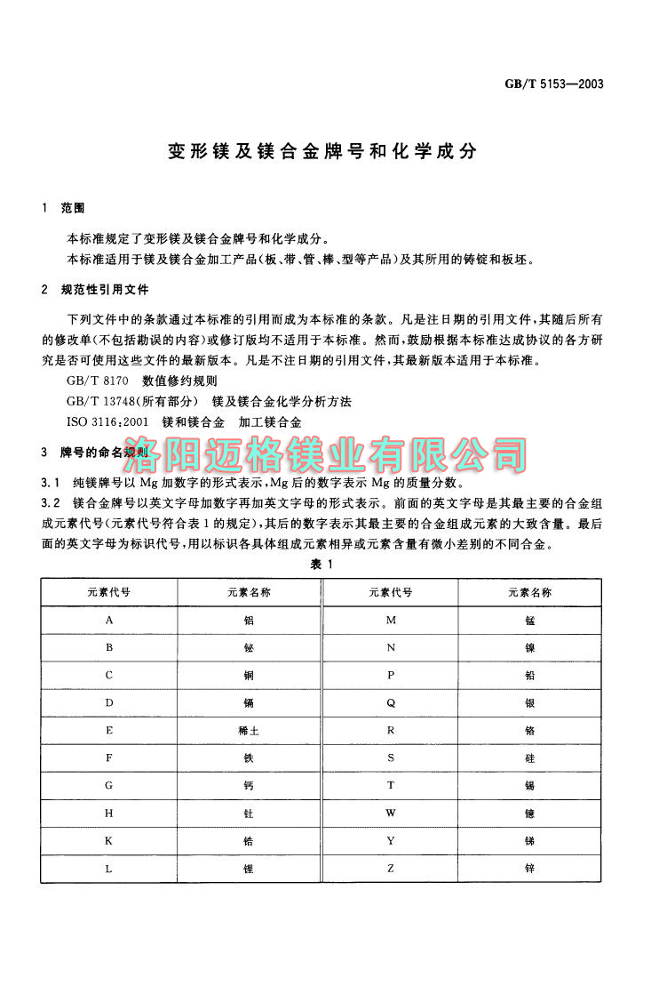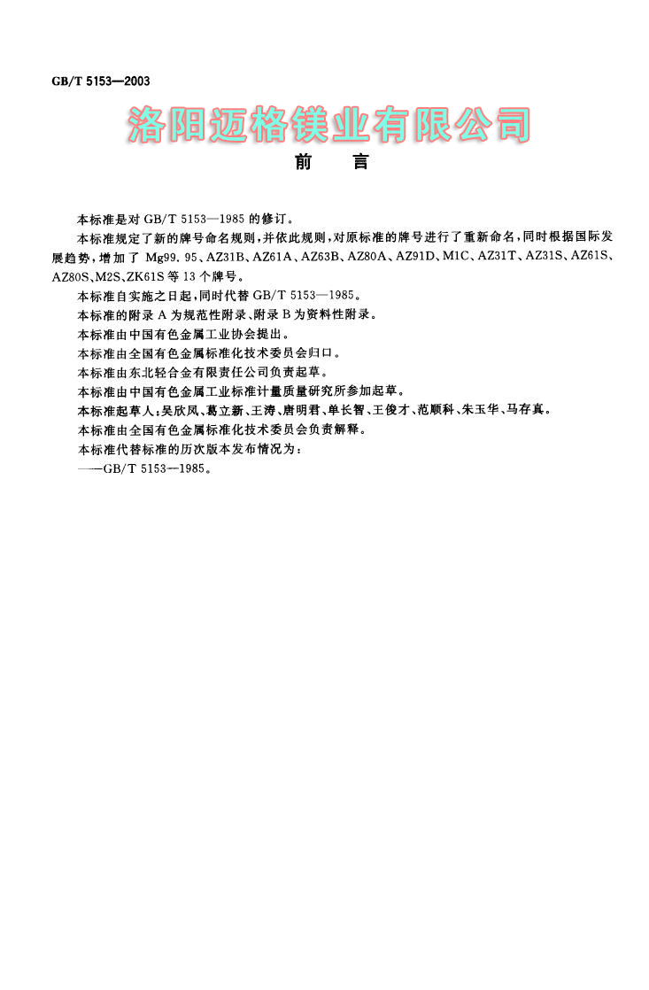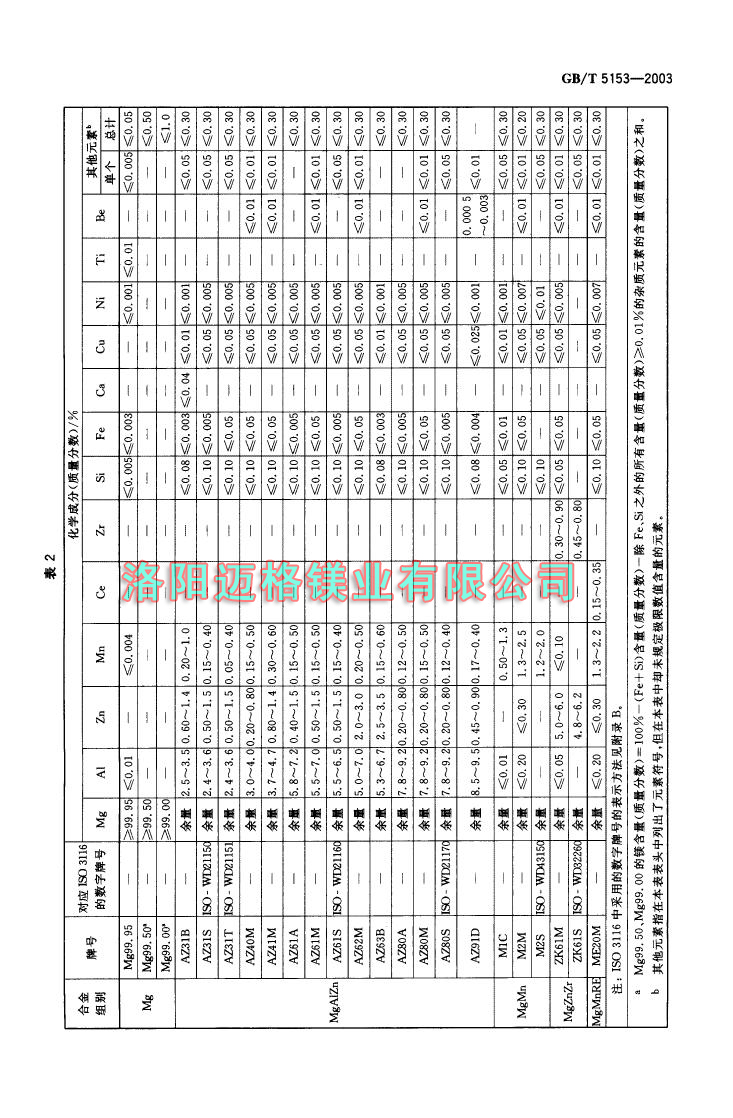 GBT 5153-2003 變形鎂及鎂合金牌號和化學成分